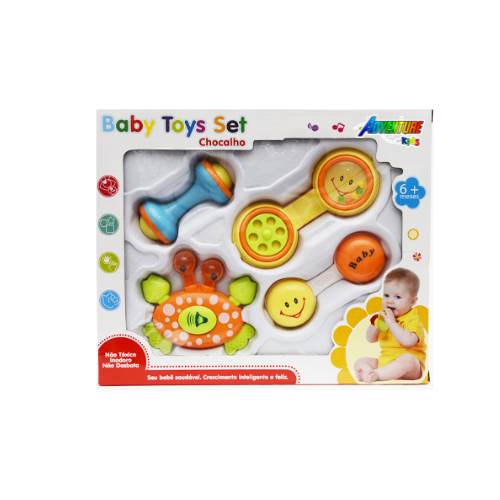 BRQ 338 - Conjuntos Chocalhos (1ª Infância) 4 Peças Sortidas na Caixa bliter – A 24 X L 29 cm.