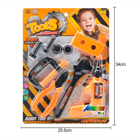 BRQ 1588 - Kit ferramentas com furadeira na cartela (8 peças). L 25 cm x A 34 cm.
