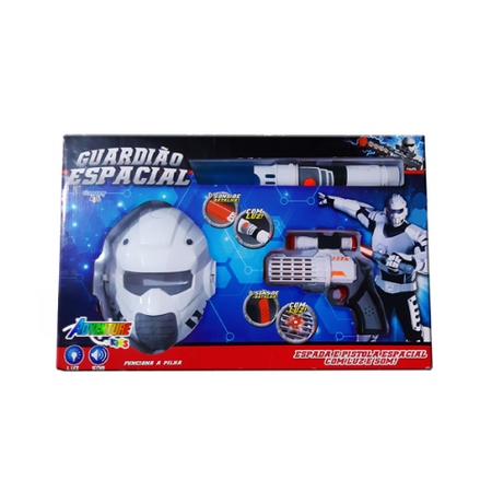 BRQ 542 - Conjunto Guardiao Espacial (Mascara+ Espada+ Pistola) Som e Luz a Pilha – A 34 X L 53 cm.