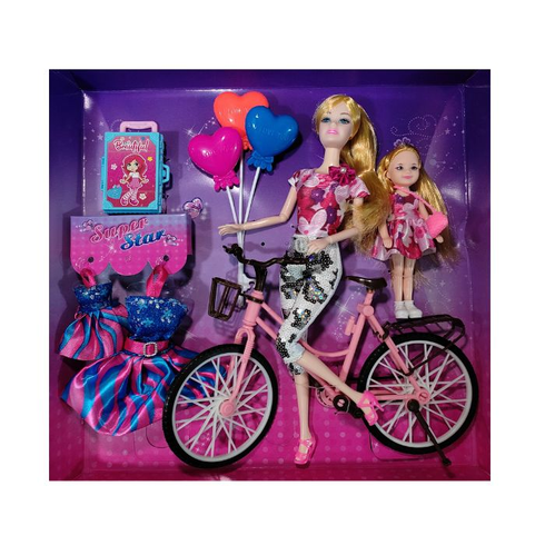 BRQ 947 - Boneca na Bicicleta, com peças e acessorios, na caixa – A 32 X L 32 cm.