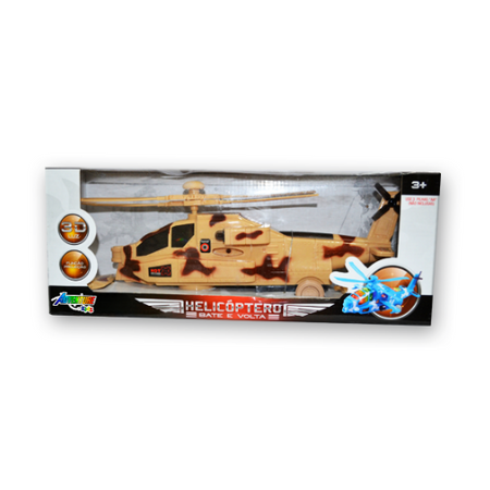 BRQ 100 - Helicoptero Apache de Guerra Bate e Volta a Pilha (Luz e Som com projetor de imagem)