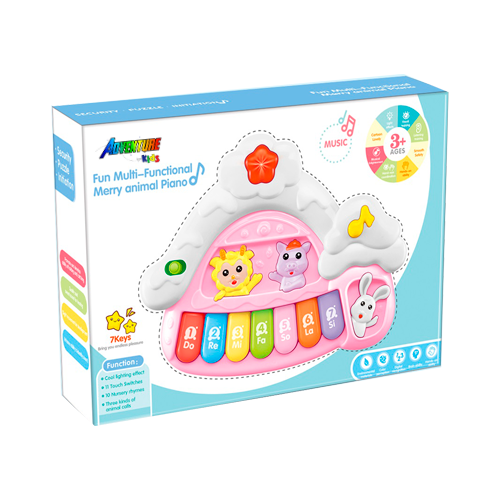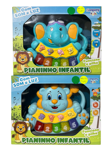 BRQ 784 - Pianinho infantil musical luz e som, chave seletora, (Leão/Elefante), na Caixa